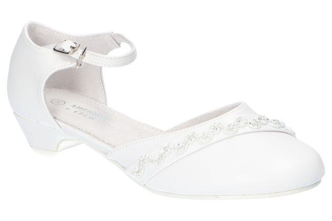NOWE, WYGODNE, SOLIDNIE WYKONANE BUTY KOMUNIJNE MARKI AMERICAN CLUB. WKŁADKA ZOSTAŁA WYKONANA ZE SKÓRY NATURALNEJ. BUTY POSIADAJĄ PIĘKNY KLASYCZNY BIAŁY WZÓR IDEALNE NA WSZELKIEGO RODZAJU PRZYJĘCIA OKOLICZNOŚCIOWE- ZAPEWNIAJĄ WYGODĘ I KOMFORT UŻYTKOWANIA.
