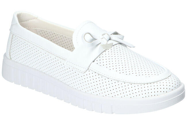 SOLIDNIE WYKONANE BUTY SKÓRZANE DAMSKIE MARKI AMERICAN CLUB. MOKASYNY WYKONANE SĄ Z NAJWYŻSZEJ JAKOŚCI MIĘKKIEJ SKÓRY NATURALNEJ. BUTY POSIADAJĄ MODNY WZÓR SKÓRZANĄ WKŁADKĘ ORAZ BIAŁY, ANTYPOŚLIZGOWY SPÓD. WSUWKI ZAPEWNIAJĄ WYGODĘ ORAZ KOMFORT UŻYTKOWANIA