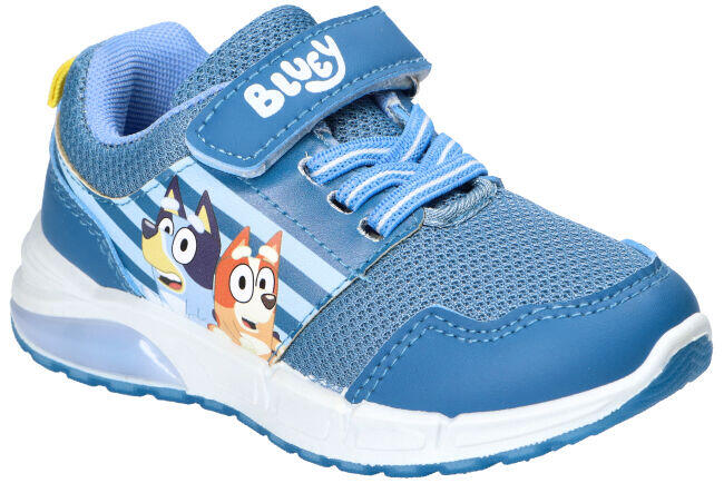 SOLIDNIE WYKONANE ORAZ LEKKIE BUTY ZE ŚWIECĄCĄ PODESZWĄ LED Z POSTACIAMI Z BAJKI BLUEY. SOLIDNE RZEPY UŁATWIAJĄ ZAKŁADANIE ORAZ DOPASOWANIE OBUWIA. BUTY POSIADAJĄ SZTYWNY ZAPIĘTEK, ORYGINALNY WZÓR Z FILMU BLUEY ORAZ LEKKI, ŚWIECĄCY, ANTYPOŚLIZGOWY SPÓD.