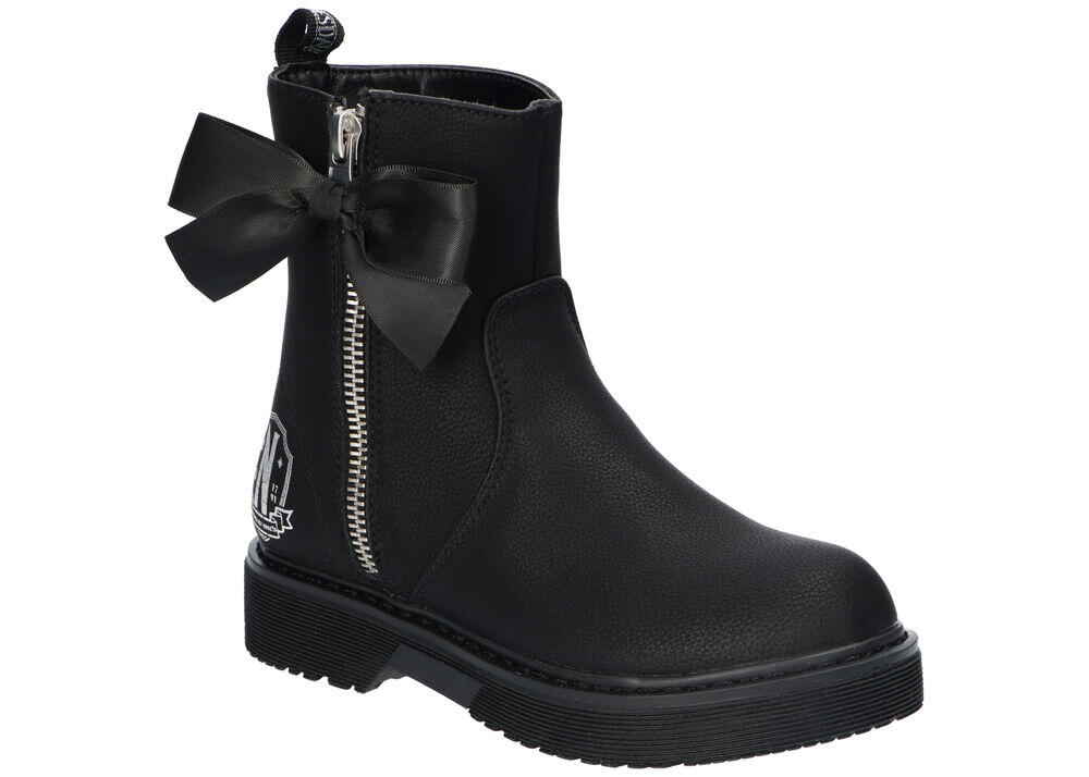 OFERUJEMY NOWE, SOLIDNIE WYKONANE, OCIEPLANE TRZEWIKI ZIMOWE Z MOTYWEM Z FILMU "WEDNESDAY". BOTKI POSIADAJĄ MODNY ORYGINALNY WZÓR, SOLIDNY SUWAK, OCIEPLANĄ TKANINĘ ORAZ STABILNY, ANTYPOŚLIZGOWY SPÓD. KOZACZKI SĄ IDEALNE NA ZIMNE JESIENNO - ZIMOWE DNI.
